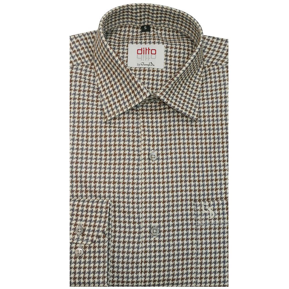 A classic blended-fabric shirt featuring a neat checks pattern, offering a smart and versatile look. Comfortable, stylish, and perfect for everyday or semi-formal wear.