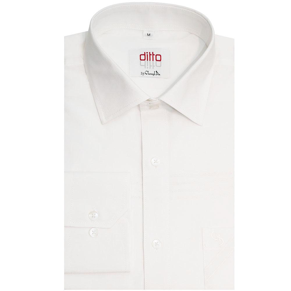 "Classic white shirt enhanced with stylish contrast detailing, offering a refined and versatile look for both casual and formal wear."