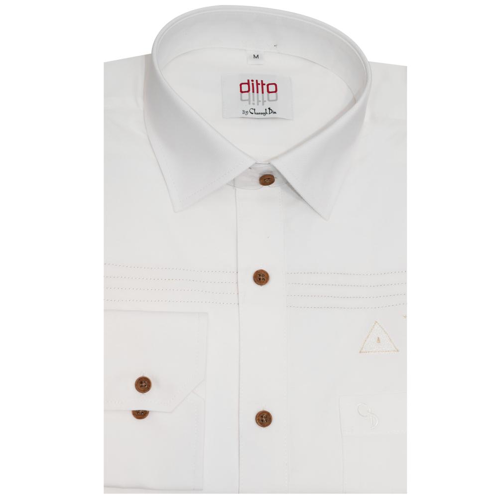"Classic white shirt enhanced with stylish contrast detailing, offering a refined and versatile look for both casual and formal wear."