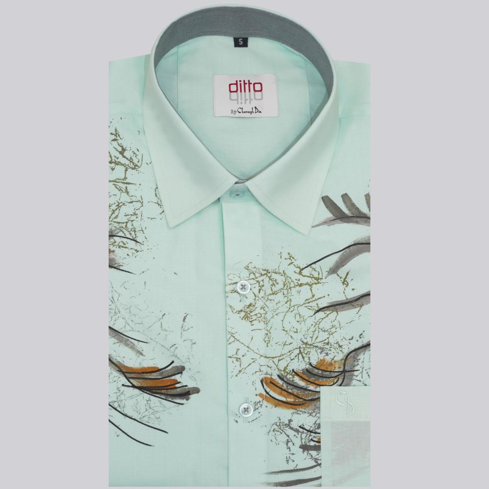 A stylish blended-fabric shirt with a unique handpainted design, offering comfort, durability, and standout appeal.