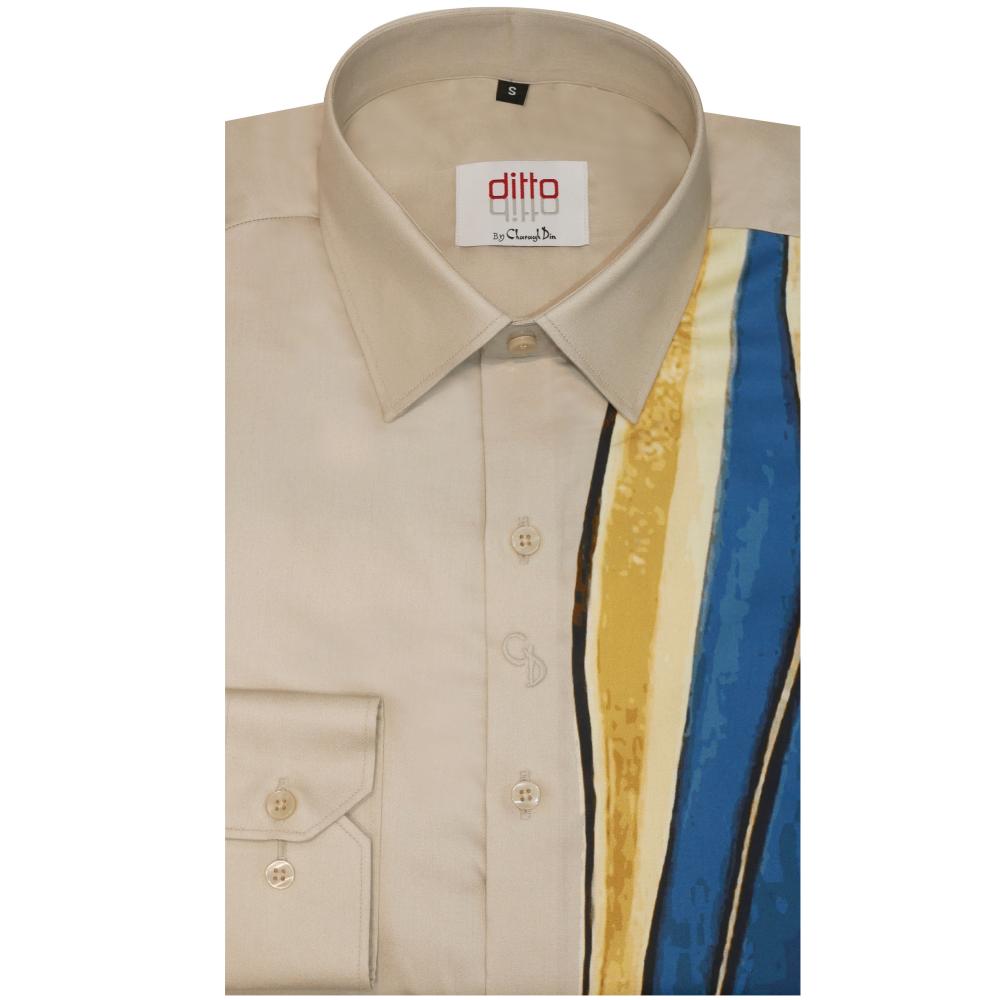 A stylish blended-fabric shirt featuring a clean ditto print pattern, offering a smooth feel, easy maintenance, and a modern, versatile look suitable for both casual and semi-formal wear.