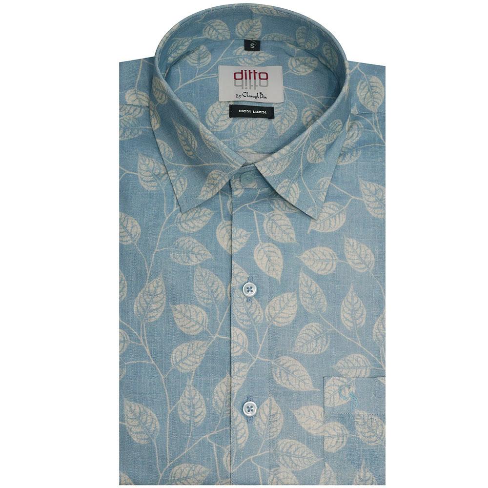 A premium linen shirt with a subtle ditto print, offering a lightweight, breathable texture and a refined look ideal for both casual outings and party wear.