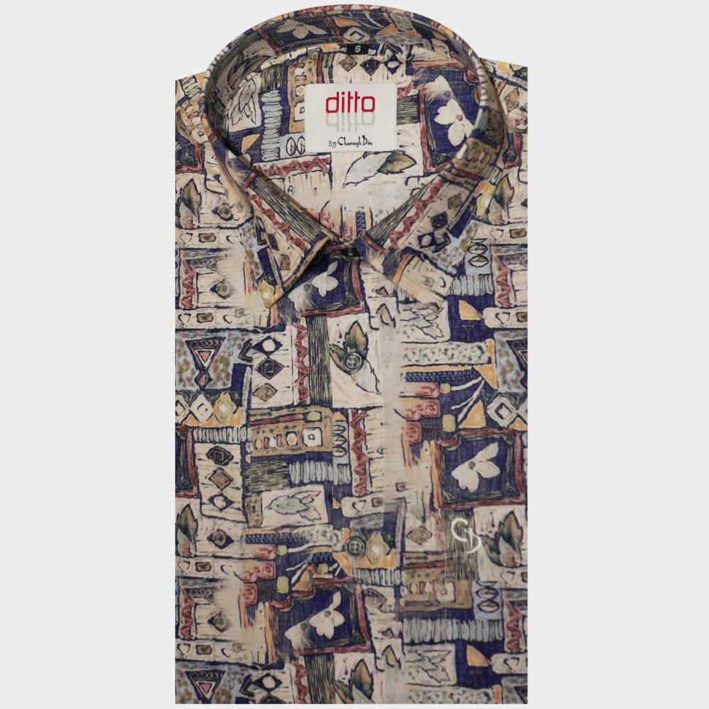 Printed short shirt in premium blended fabric with breathable comfort, vibrant prints, and a modern fit.