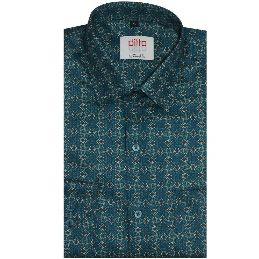 A stylish blended-fabric shirt featuring a clean ditto print pattern, offering a smooth feel, easy maintenance, and a modern, versatile look suitable for both casual and semi-formal wear.