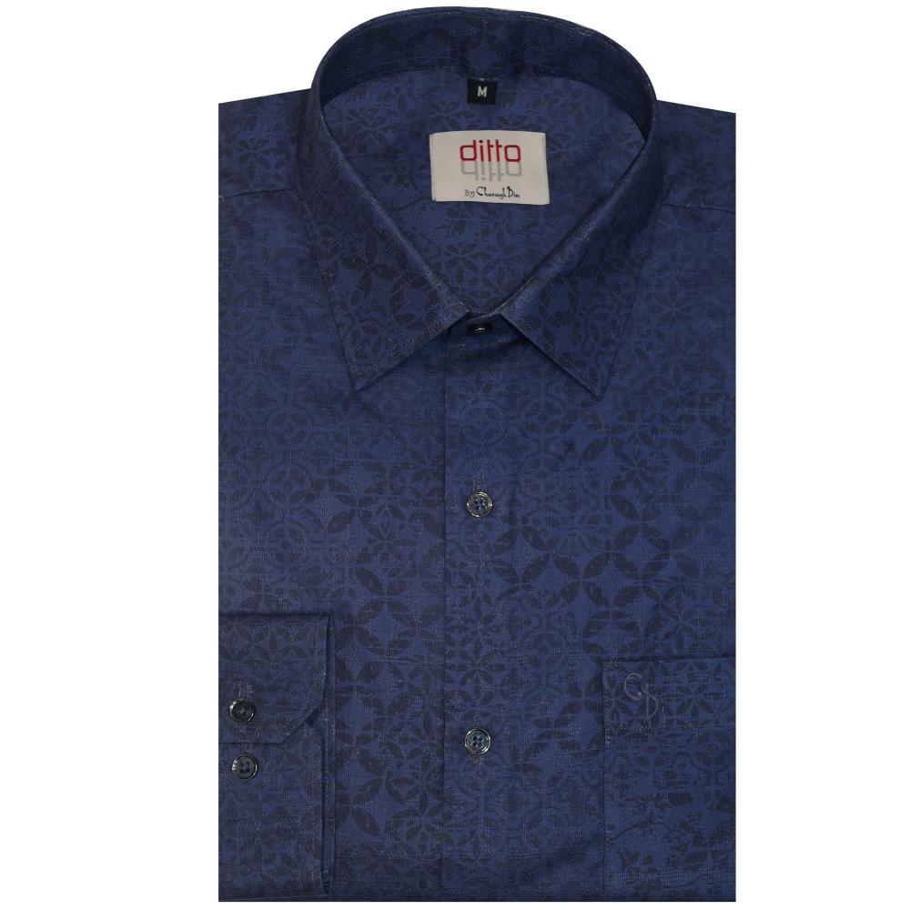 A stylish blended-fabric shirt featuring a clean ditto print pattern, offering a smooth feel, easy maintenance, and a modern, versatile look suitable for both casual and semi-formal wear.