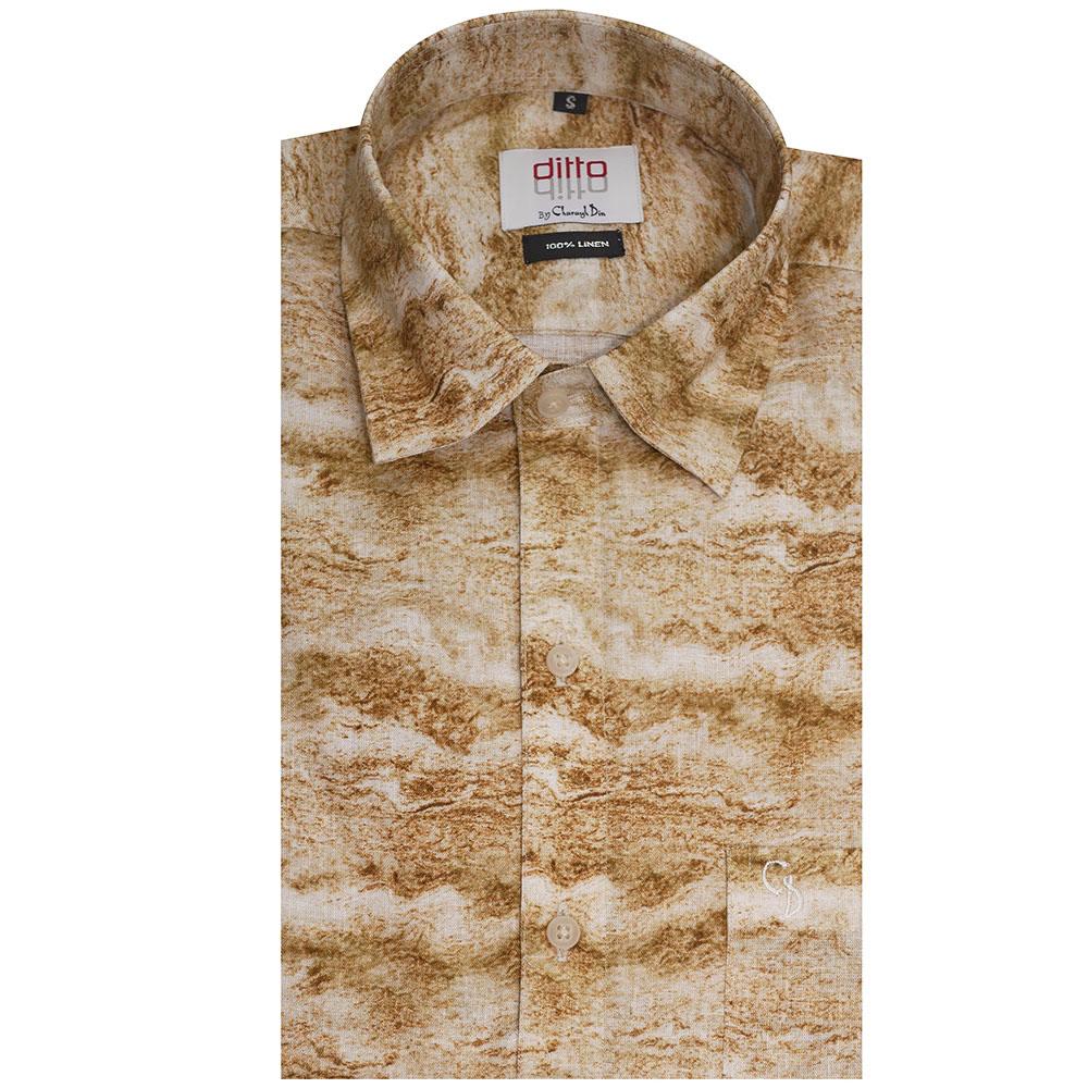 A premium linen shirt with a subtle ditto print, offering a lightweight, breathable texture and a refined look ideal for both casual outings and party wear.