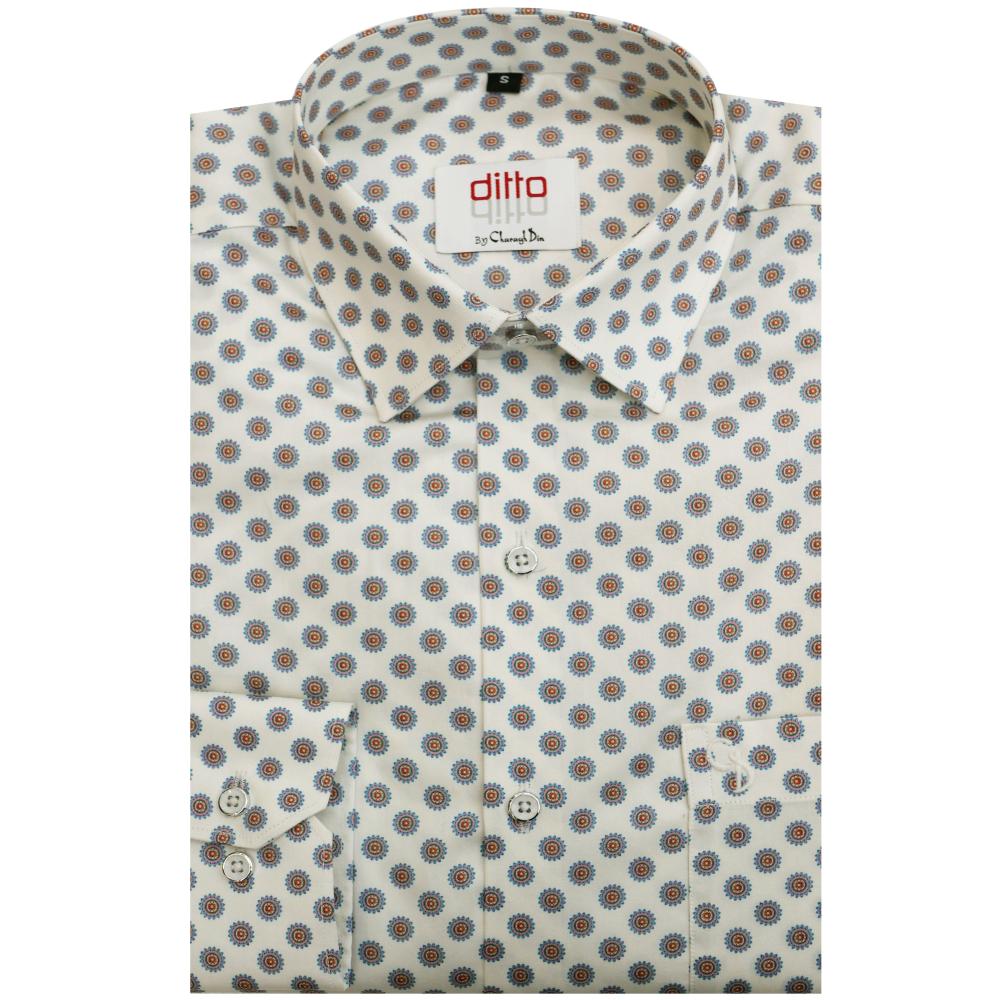 A stylish blended-fabric shirt featuring a clean ditto print pattern, offering a smooth feel, easy maintenance, and a modern, versatile look suitable for both casual and semi-formal wear.