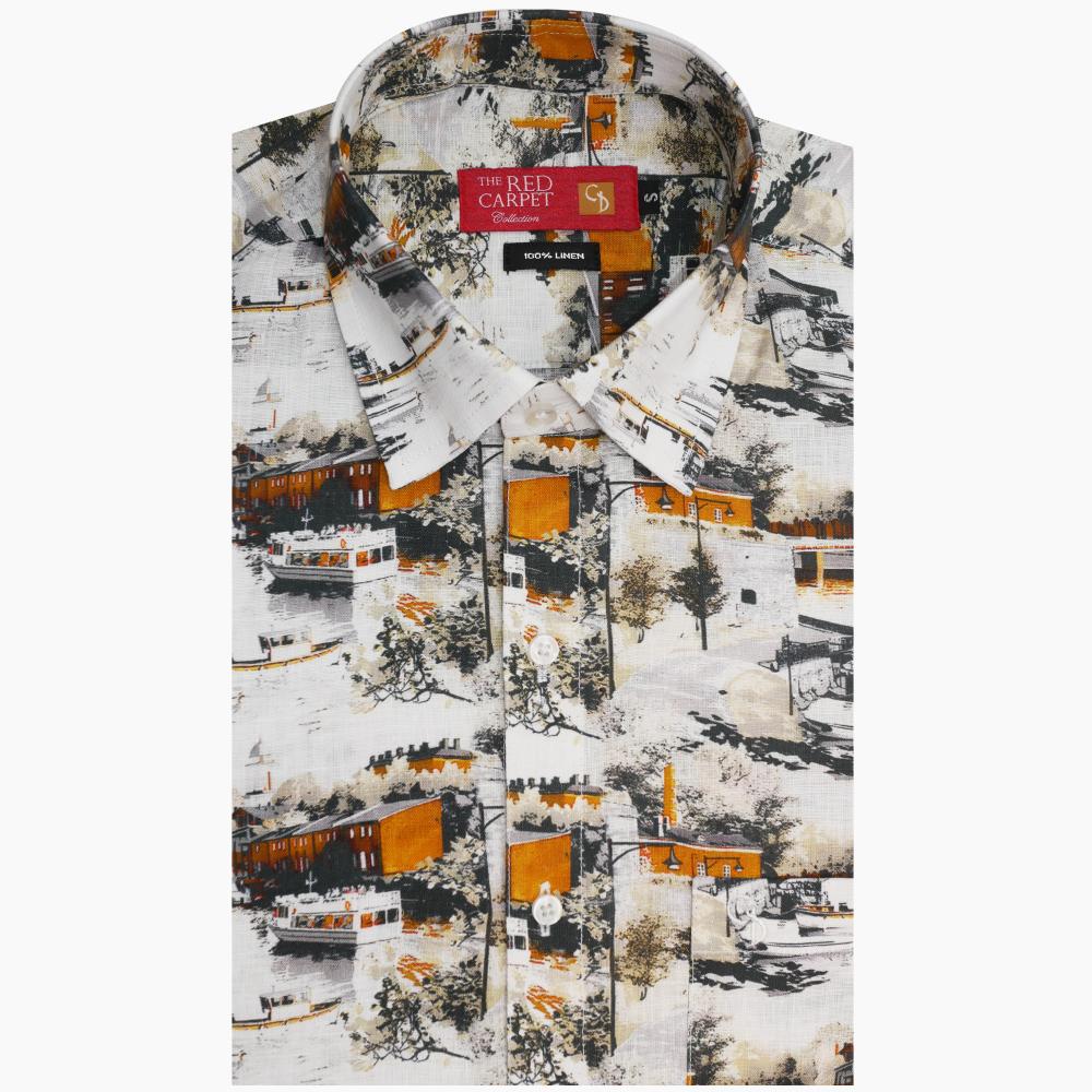 Designed with premium breathable linen, this RED CARPET printed shirt blends comfort, elegance, and standout visual appeal.