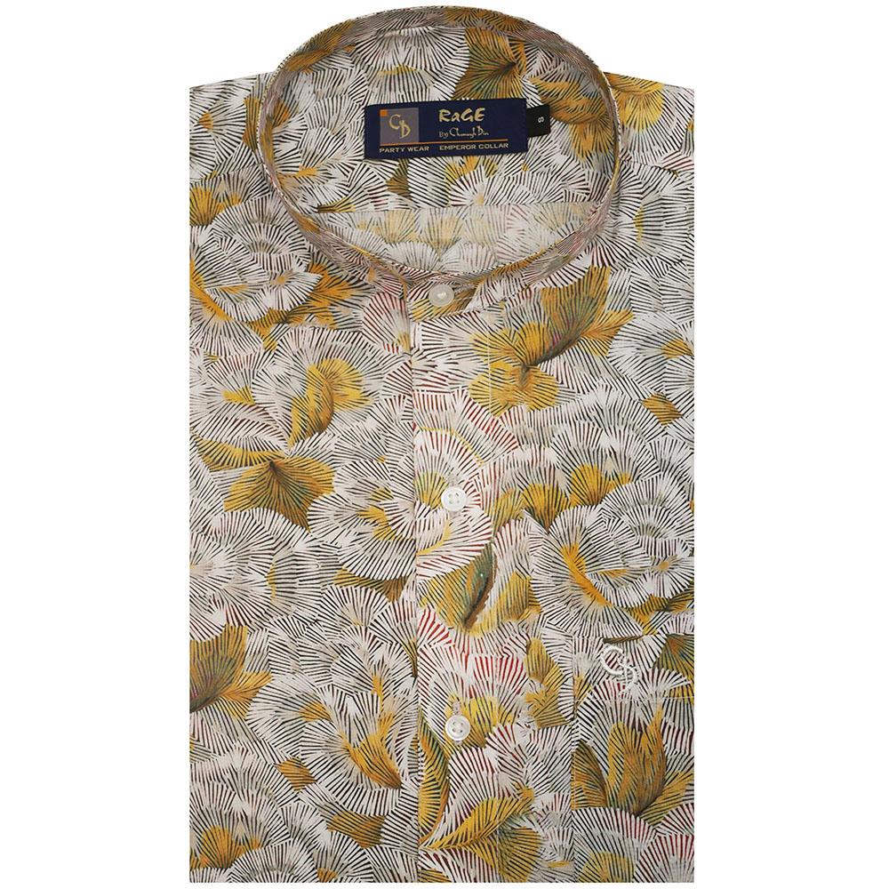 A modern blended-fabric shirt with a sleek Chinese collar and stylish all-over print, offering a smart and comfortable look.