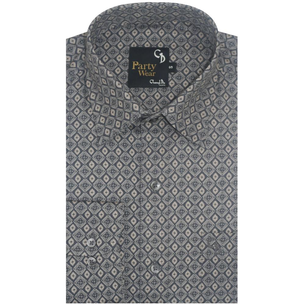 A stylish blended-fabric shirt featuring a vibrant party print, offering a modern, trendy look perfect for festive and casual occasions.
