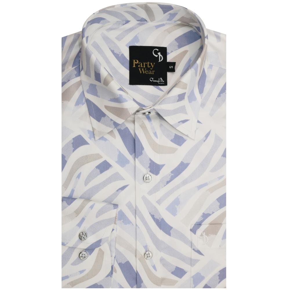 A stylish blended-fabric shirt featuring a vibrant party print, offering a modern, trendy look perfect for festive and casual occasions.