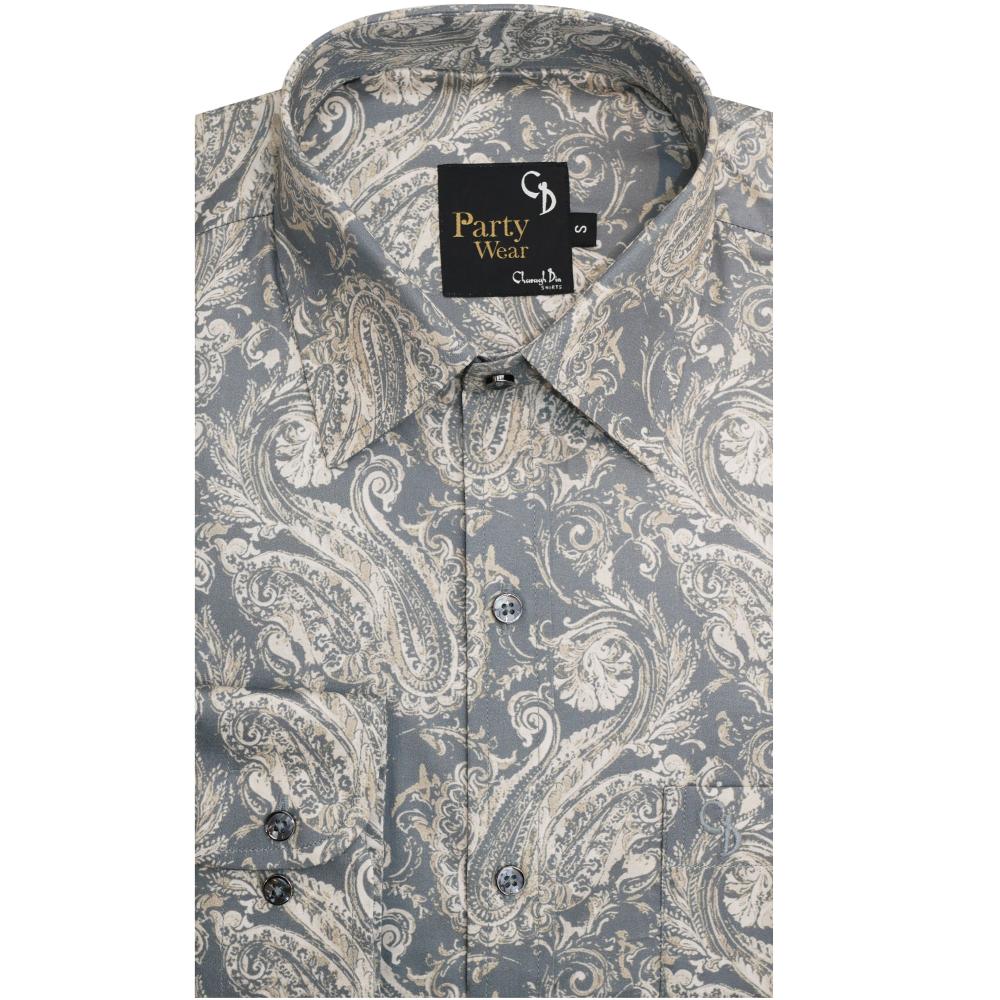 A stylish blended-fabric shirt featuring a vibrant party print, offering a modern, trendy look perfect for festive and casual occasions.
