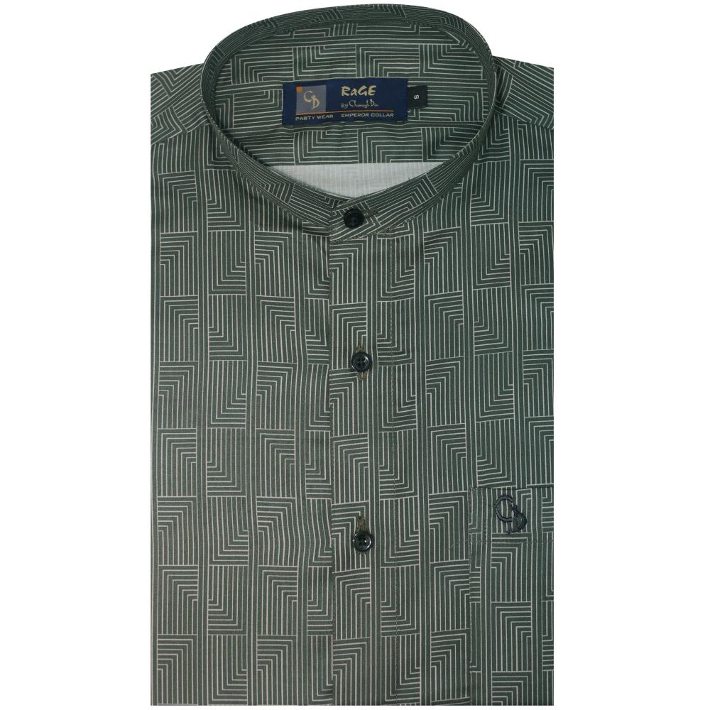 A modern blended-fabric shirt with a sleek Chinese collar and stylish all-over print, offering a smart and comfortable look.