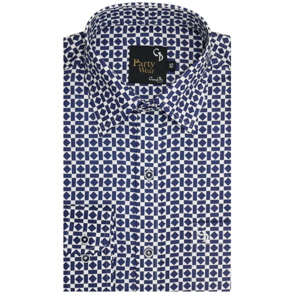 A stylish blended-fabric shirt featuring a vibrant party print, offering a modern, trendy look perfect for festive and casual occasions.